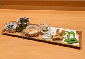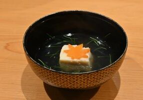 食前酒 季節のリキュール 先付 紅葉鯛昆布〆め 甘海老漬け 柑橘のジュレ 菊菜菊花お浸し 椀物 みぞれ薄葛仕立 雲子真蒸 紅葉人参 三つ葉 柚子 造り 本日のお造り 盛り合わせ 焼物 うなぎ西京焼き 菊蕪酢漬け 八寸 あん肝ぽん酢 初霜牡蠣時雨煮 すっぽん煮凝り 栗豆腐 かます柚庵焼き 生麩アボカド味噌田楽 安納芋揚げ 銀杏むかご飯蒸し 大浦牛蒡煮 強肴 鯛 蕪 海老芋 法蓮草 針柚子 肉皿 和牛ヒレ炭火焼き 栗味噌ソース セルフィーユ 山葵塩 食事 土鍋穴子湯葉あんかけ御飯 味噌椀 香物 甘味 季節のアイス 二色わらびもち お薄 * 個室ご利用の場合は個室料5%加算し 12,734円頂戴いたします。 |