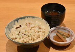 季節の炊き込みご飯 1944円 江戸前穴子姿寿司 2700円 価格はすべて税込表示です。 |